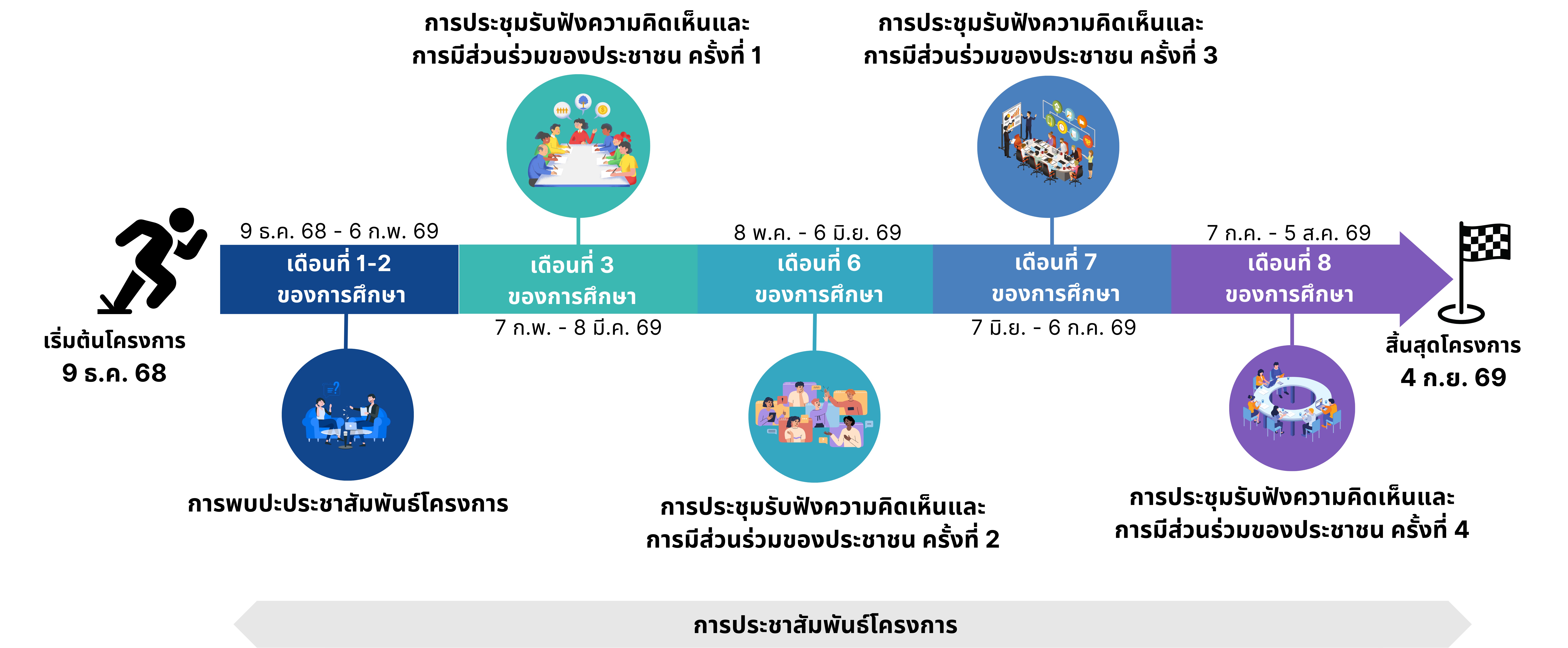 >เพื่อนำเสนอข้อมูลรายละเอียดโครงการ ขอบเขตการดำเนินงาน แก่ผู้มีส่วนได้เสียและหน่วยงานที่เกี่ยวข้องได้รับทราบ รวมทั้งรับฟังความคิดเห็น ข้อมูลของชุมชน ประเด็นที่กังวล ข้อคิดเห็นเบื้องต้นต่อโครงการ